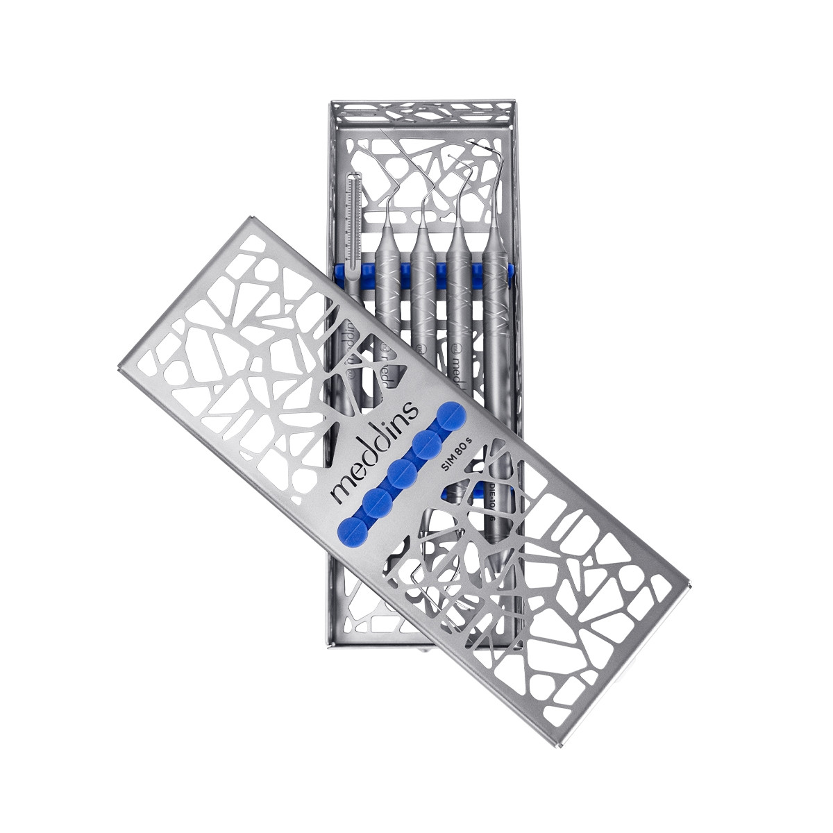 - Sterilizační kazeta pro nástroje SIM 80 s. Kazeta pojme pět stomatologických nástrojů a díky speciálnímu tvaru držáků nástroje nekloužou v kontejneru a jsou spolehlivě chráněny před poškozením během přepravy.