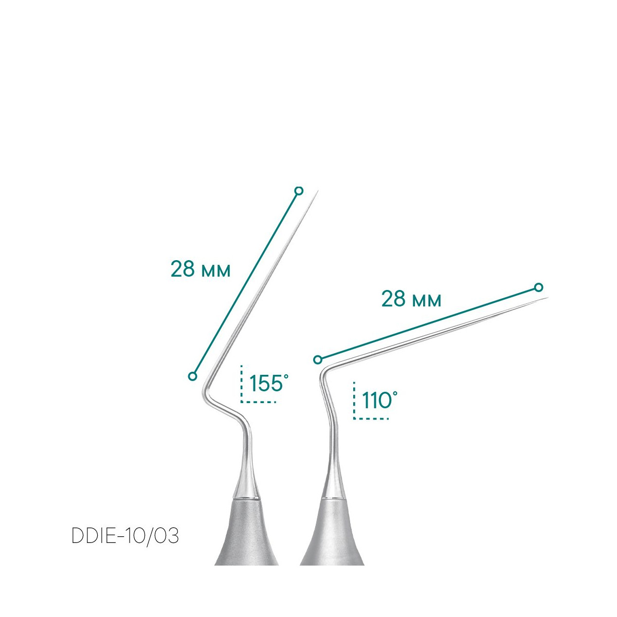 - Pracovní části sondy mají délku 28 mm a jsou ohnuté pod různými úhly (110° a 155°), což umožňuje snadné provádění endodontických manipulací.