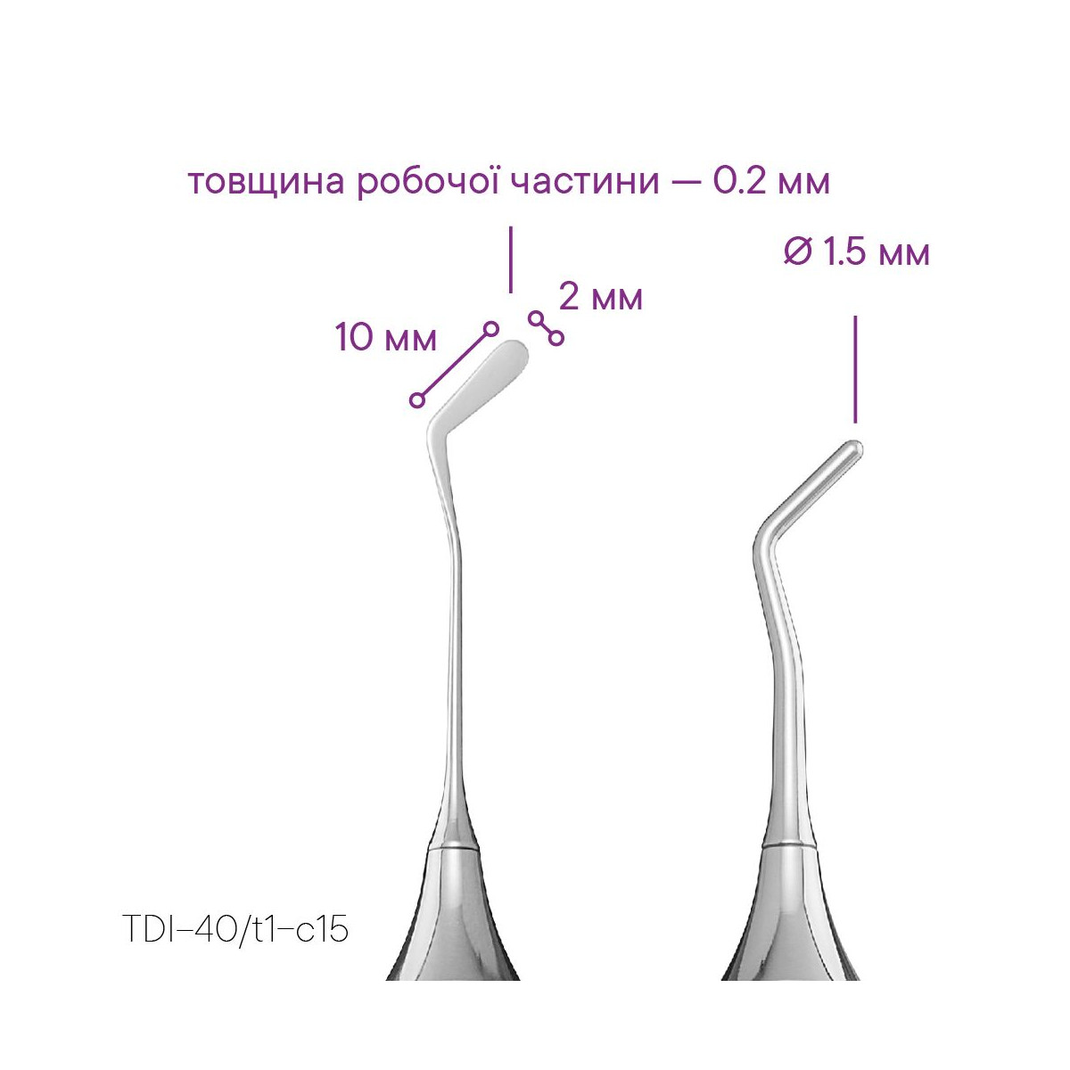 - Nástroj představuje kombinaci nejtenčího hladítka Meddins TDI 40 t1 a štěrkače ve tvaru kapky o průměru 1,5 mm.