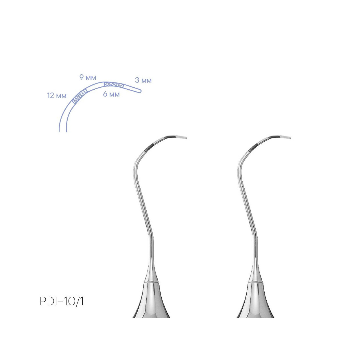 Используется для поиска зоны фуркации корня. Он позволяет обследовать пораженные участки на нижней и верхней челюсти. На инструмент нанесена шкала с цветовой маркировкой.