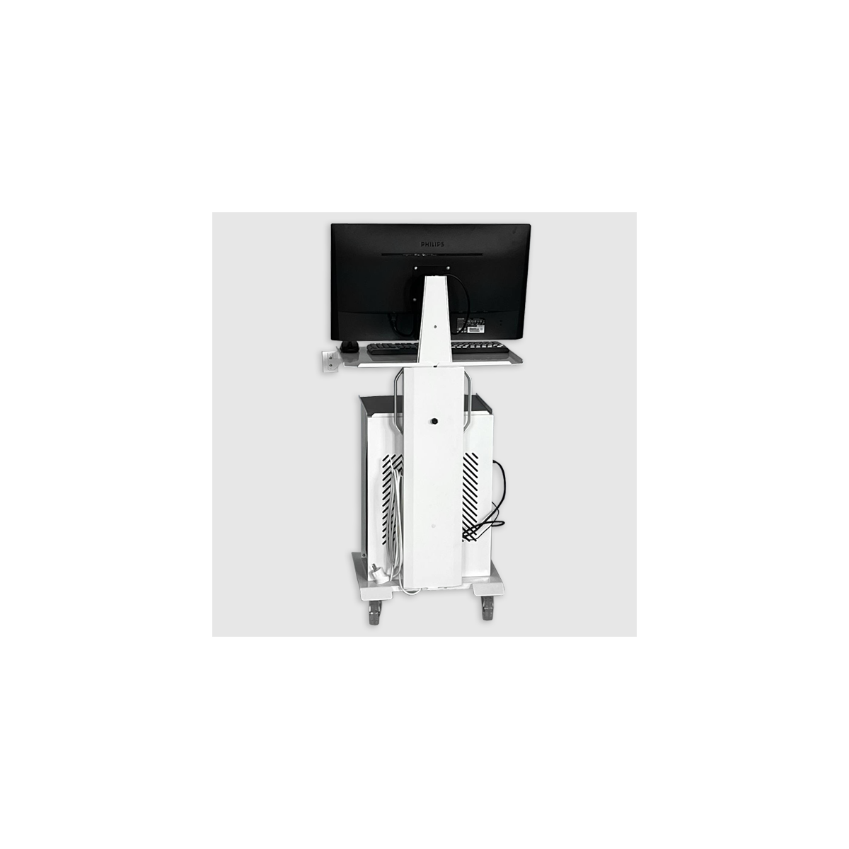 Многофункциональный мобильный столик для работы с ПК (PC) и подсоединенными к нему периферическими устройствами. Для удобного пользования предусмотрено размещение кабелей питания, соединительных шнуров, блоков питания, розеток в закрытой нише.