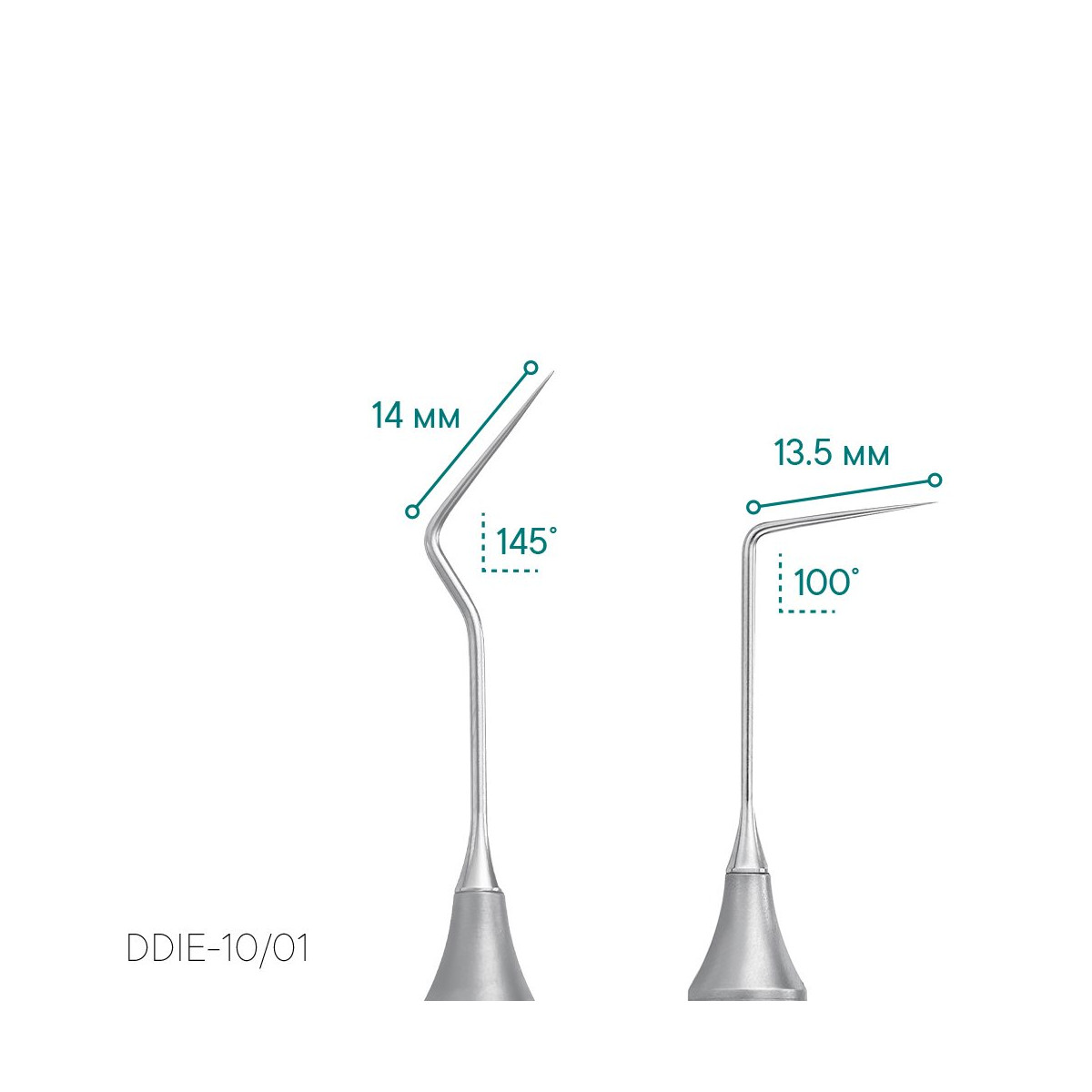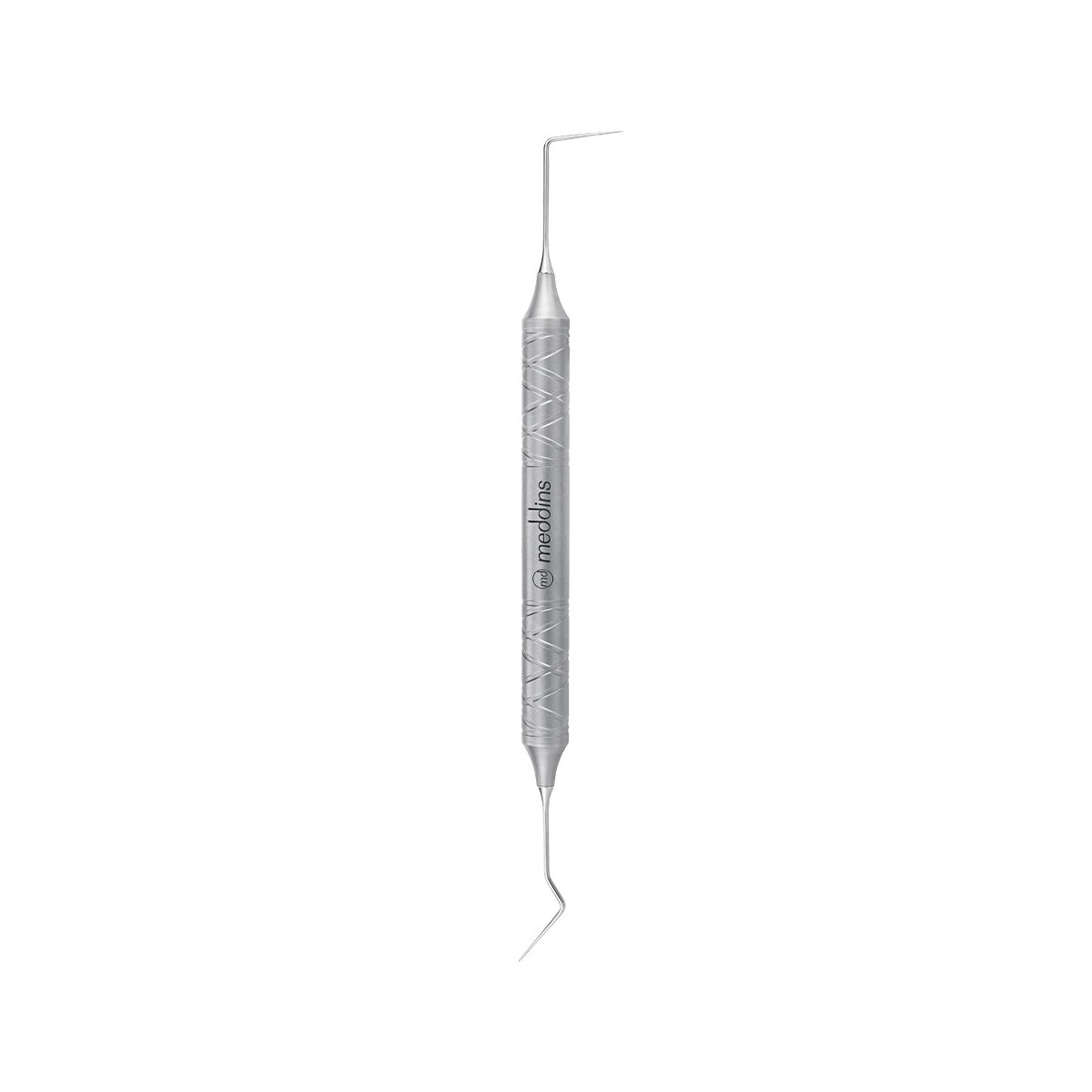 - Робочі частини зонда мають різну довжину (13,5 і 14 мм) і вигнуті під різним кутом (100° і 145°), що дозволяє з легкістю проводити ендодонтичні маніпуляції.