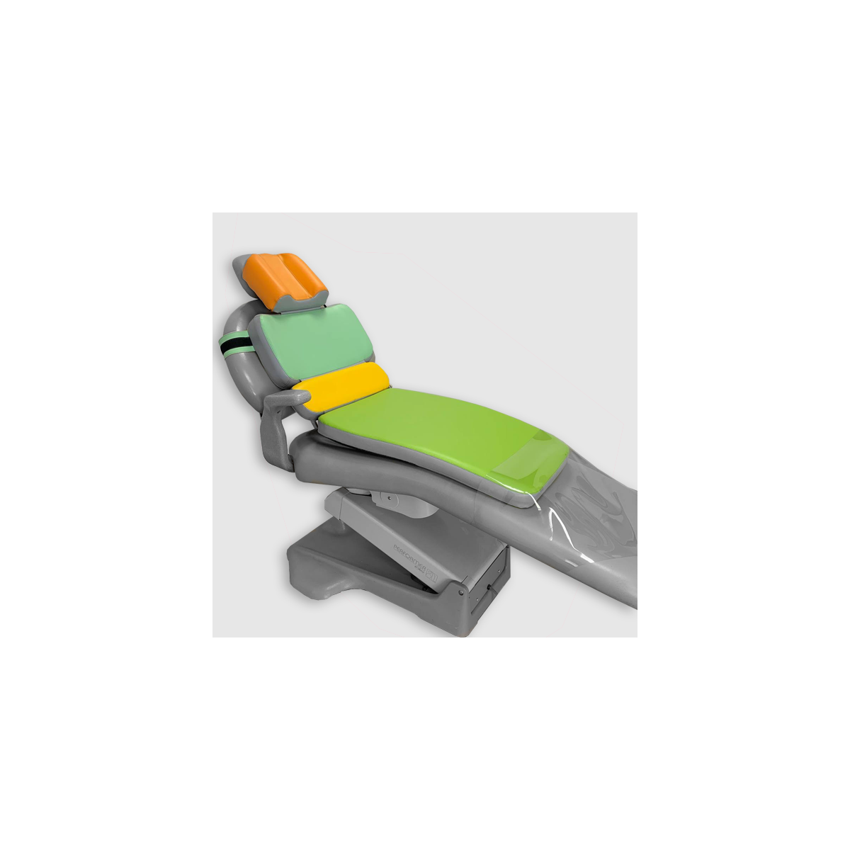 Бічна підтримка плечей та голови дитини, регулювання висоти спинки (завдяки тому, що спинка складається з двох частин), за потреби можливість фіксації рук під час лікування.