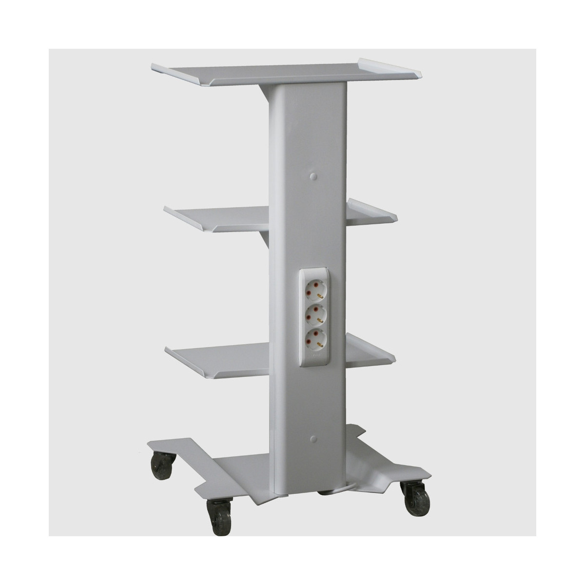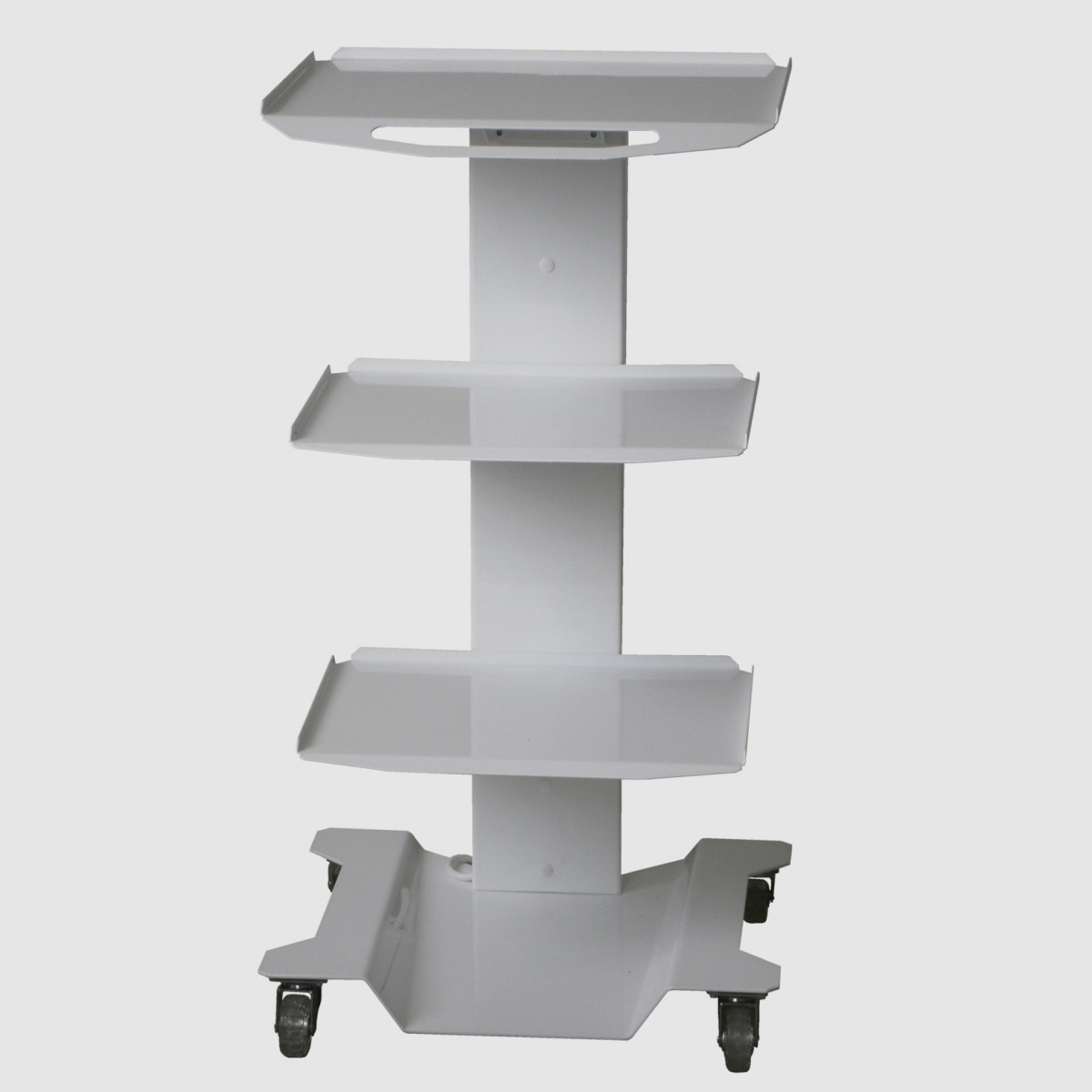 Металевий столик, три полиці, колеса з м'якою поверхнею.