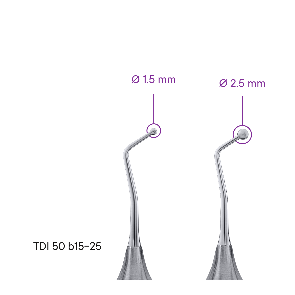 - Кулястий штопфер доступний у розмірах 1,5 мм та 2,5 мм.